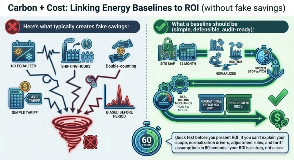 Carbon + Cost: Linking Energy Baselines to ROI Without Fake Savings